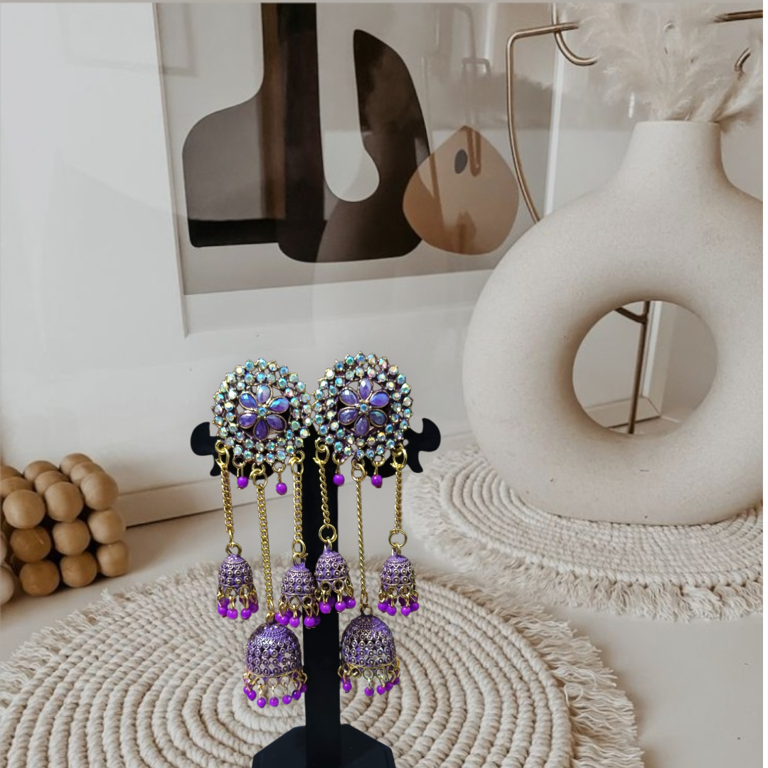 Available in multiple color variations, these earrings are thoughtfully designed to complement a wide range of ethnic and traditional outfits. Whether paired with a saree, salwar kameez, or an Anarkali suit, these Jhumkas will effortlessly add a touch of grace and cultural charm to your wardrobe. Make a statement of authenticity and tradition with these timeless pieces.
